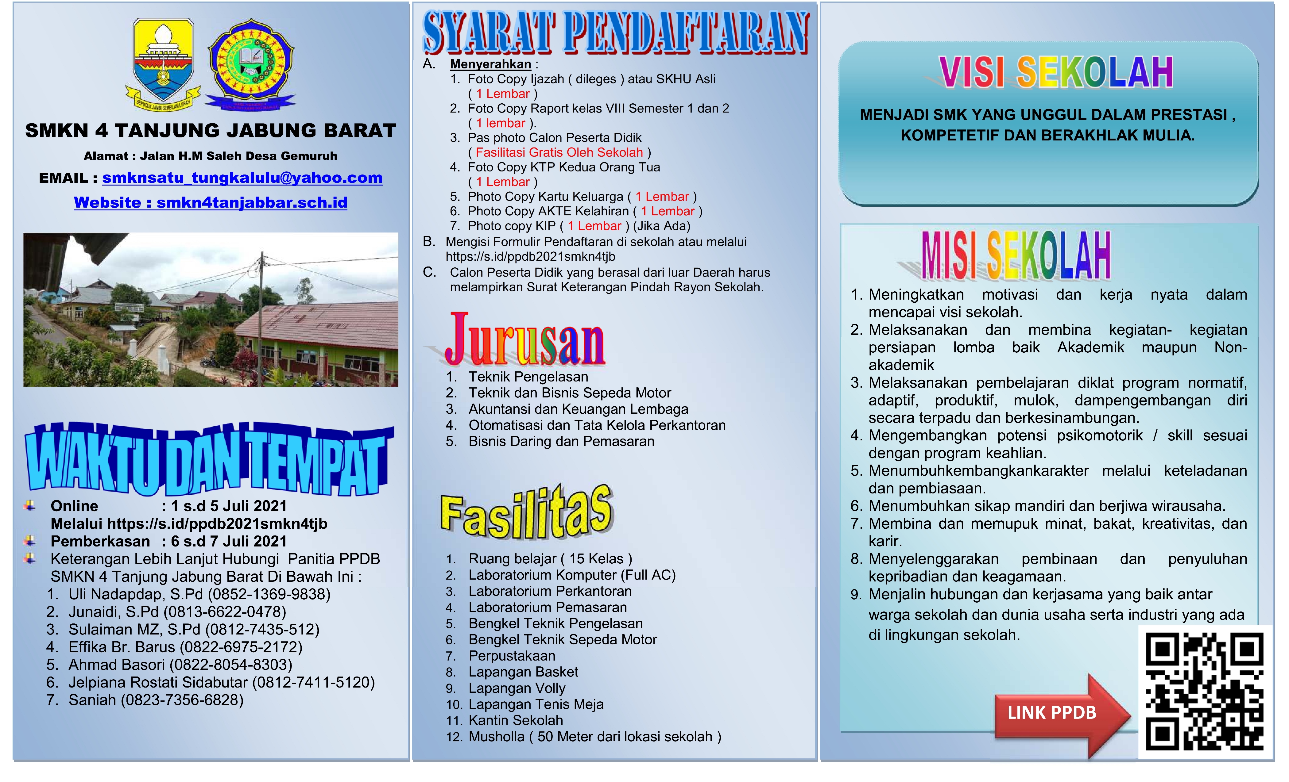 Link Pengisian Formulir Pendaftaran : https://s.id/ppdb2021smkn4tjb Atau Scan QR CODE ini :